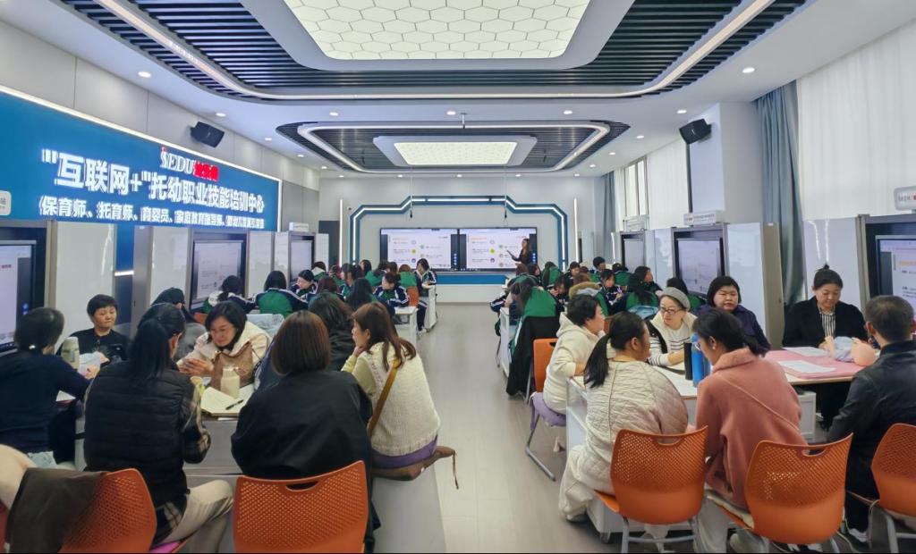 参训教师反馈:“作为校内专任教师,我们在学前教育理论教学上有积累,但对行业最新的托育课程标准、幼儿园智慧化教学工具的应用经验比较欠缺。这次企业导师带来的‘课岗融合示范课’,直接把一线城市幼儿园的真实教案、岗位考核标准搬进了课堂,还教我们用虚拟仿真系统设计‘园所环创实训任务’——学生能在系统里搭建活动室、模拟区角游戏,我们也能实时看到学生的操作漏洞,教学针对性强了很多。这种‘高校教师+企业专家’的双师模式,刚好补上了我们‘从课堂到岗位’的衔接短板。”