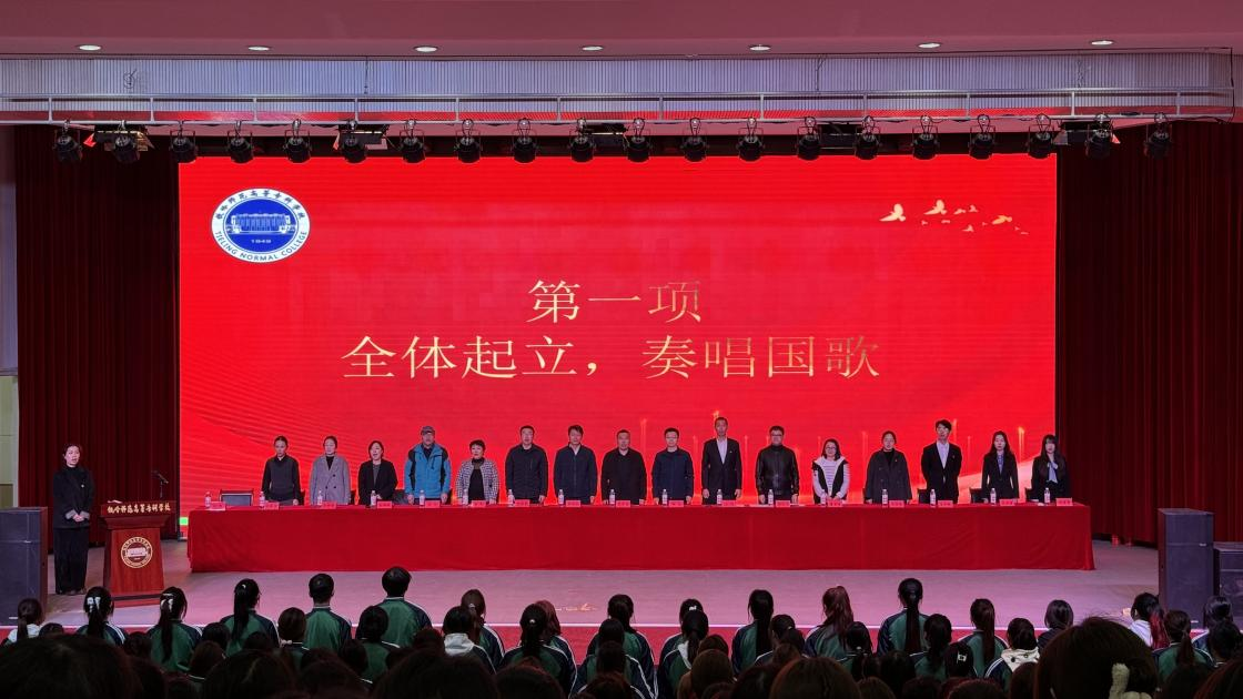 伴随着雄壮的《中华人民共和国国歌》,典礼正式拉开帷幕。全体师生肃立注目,激昂的旋律在报告厅内久久回荡,爱国情怀与青春理想在每个人心中激荡交融。