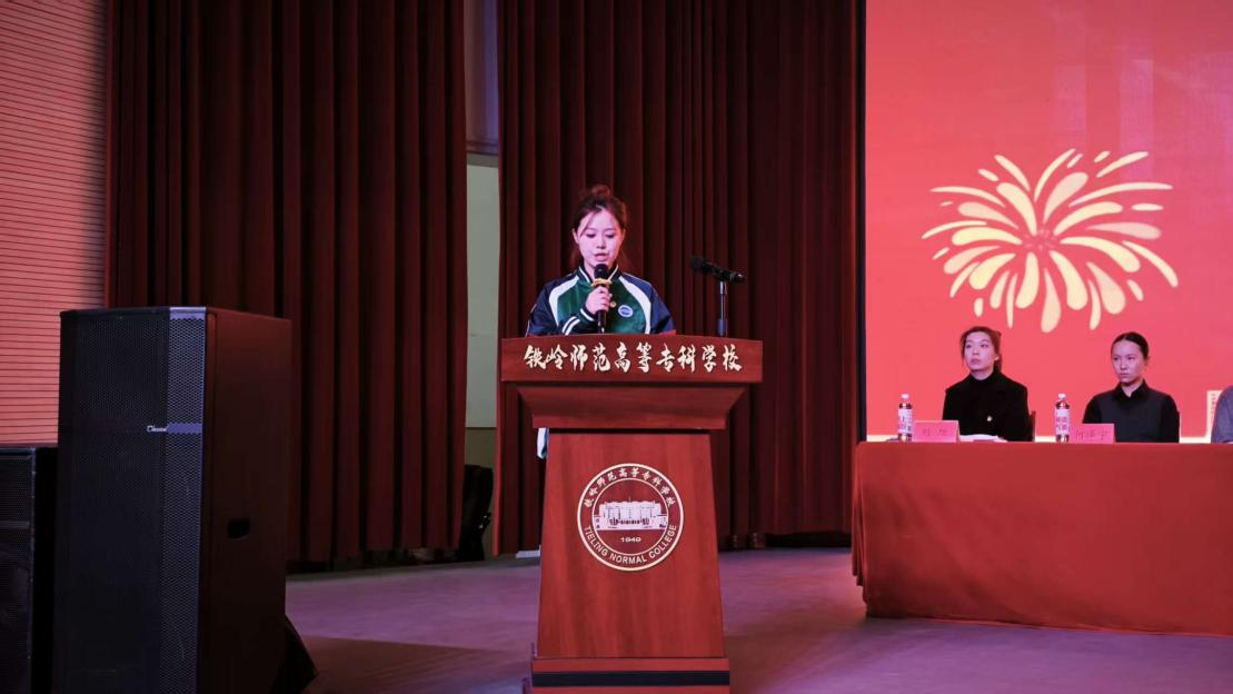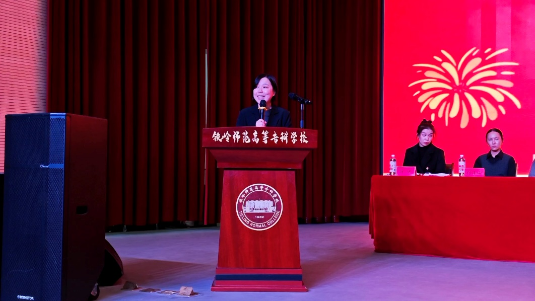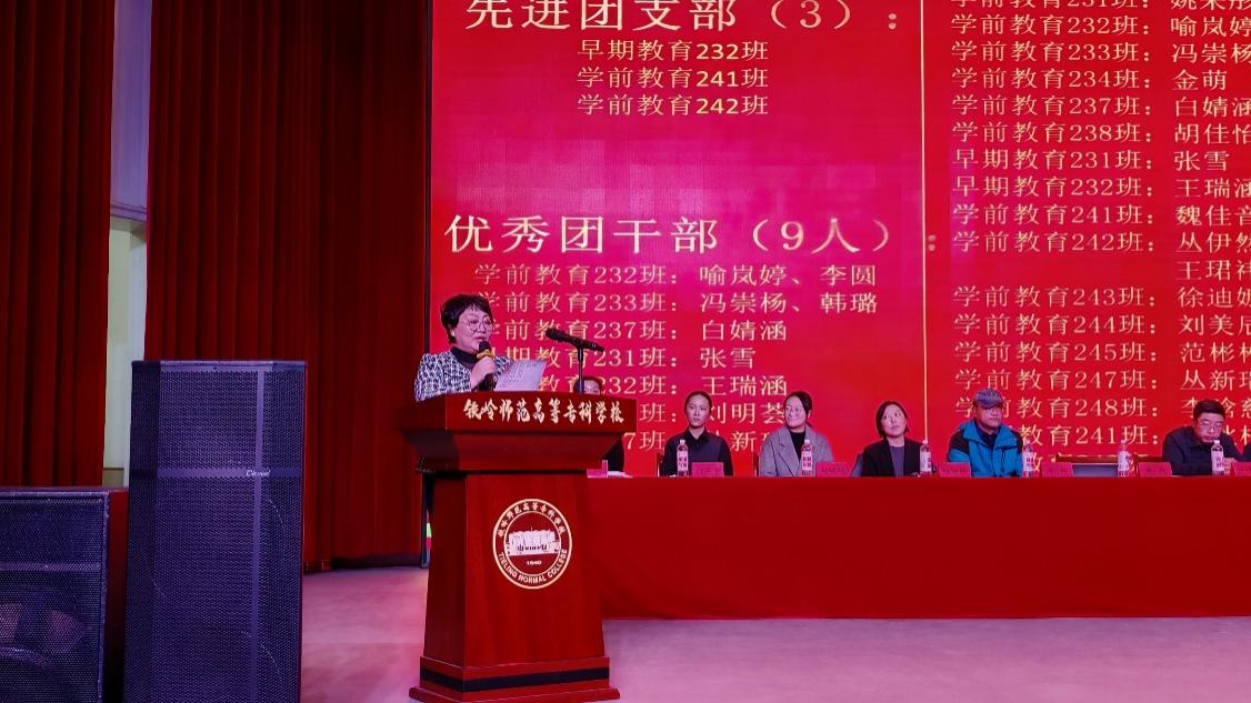 典礼现场,表彰环节点亮青春榜样。院党总支副书记王帅首先宣读校三好班级、校三好学生、优秀学生干部表彰决定,为学风建设的排头兵们送上肯定;副院长康燕随后公布先进团支部、优秀共青团干部、优秀团员及先进社团、优秀社团干部名单,彰显团学与社团工作的蓬勃活力;副院长郭以飞则宣读了铁岭市幼儿教育技能大赛、铁岭市短视频制作与运营大赛的获奖名单,为学子们立足专业、勇闯赛场的亮眼成绩喝彩。